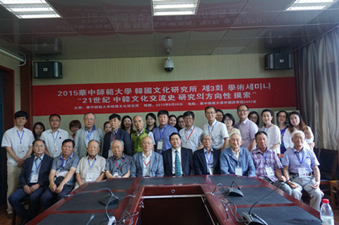 | 6月26日上午,2015华中师范大学韩国文化研究所第三届学术会议在华体会在线平台3402会议室顺利召开,本次会议的主题是“21世纪中韩文化交流史 研究的方向性摸索”。来自韩国外国语大学的金定慰教授等14位韩国学者专程来汉出席了此次学术会议,韩国驻武汉总领事馆总领事郑载男,华体会在线平台院长廖美珍,韩语系系主任池水涌等也出席了会议。