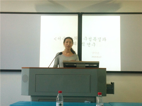 韩语系2012级研究生阳德燕同学作为主讲人于本次论坛发表了主题为“ 《鼠狱说》的结构特征及主题意识研究”的报告。报告内容主要针对论文的选题过程、资料收集过程以及具体的写作过程展开。该论文在前人研究的基础之上对《鼠狱说》的结构特征和主体意识进行了更深层次的研究,并提出了些许新颖的观点,得到了各位老师的肯定及认可。同时,老师们针对论文提出若干问题,由主讲人一一进行了解答,老师们还对论文中的不足之处进行了指正。最后,由韩语系系主任池水涌教授对本次论坛进行了总结,本次韩国语专业研究生论坛圆满结束。