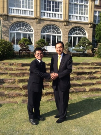 近日华体会在线平台日语系青年教师张成老师(现于日本国立一桥大学博士在读),在东京都作为留学生代表受到了日本原首相鸠山由纪夫先生的热情招待。