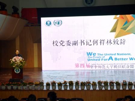 校党委副书记何祥林在欢迎辞中提到,这次模联的举办是我校积极贯彻“一体两翼”办学思路的重要举措,在经济全球化,文化多元化的信息爆炸时代,在校的大学生要开拓目标视野,提高对国际事务的关注程度,努力成为跨学科性的人才。
