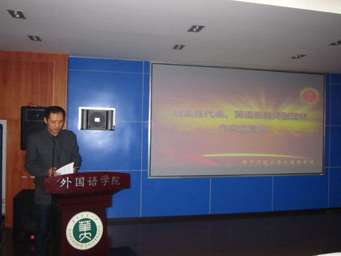 英语系张茂林老师作为班主任代表进行了交流发言。他与大家分享了自己作为班主任的工作心得,他说要做好班主任工作,一方面,需要主动与所带班级的辅导员联系,深入了解学生思想状况和活动表现;另一方面,需要积极与同年级的其他专业老师交流,全面了解学生的学习情况和课堂表现。