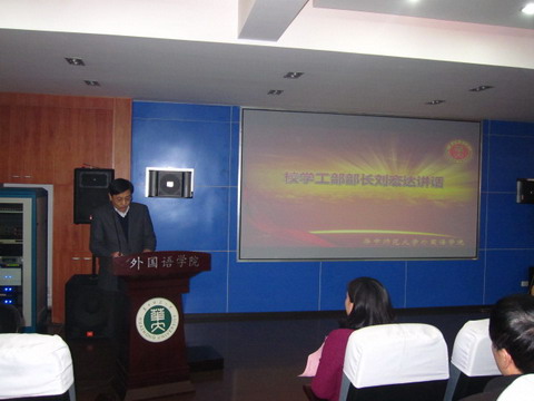 随后,校学工部部长刘宏达做了题为“班主任与大学生的大学生活”的讲话,他指出,在当今社会,大学生面临着“旧”与“新”的价值冲突、“中”与“外”的文化冲突、“科技”与“人文”的理念冲突,班主任这一角色对于大学生至关重要。他强调,班主任与辅导员都是大学生思想政治教育的骨干力量,班主任们要像对待自己的孩子,自己的弟弟、妹妹一样的对待自己的学生。他希望,班主任老师能在上好课、做好科研的同时,更多地去关心、关爱学生。