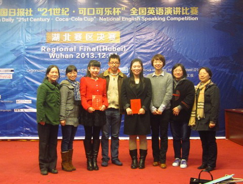 12月1日,第十九届“21世纪•可口可乐杯”全国英语演讲比赛湖北赛区决赛在湖北工业大学博学堂落下帷幕。我院法语系2011级喻鼎鼎同学获二等奖,英语系2011级周文博同学获三等奖。