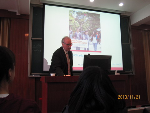 在毛教授的讲座结束之后,David J. Keitges博士对迈阿密大学来年的summer school 项目进行了详尽的介绍。其诙谐幽默的风格,让现场笑声不断。同学们对这个项目表示了极大的兴趣,在互动环节,同学们提问踊跃。