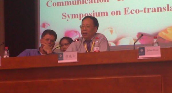 会议第二天,与会专家代表围绕着“生态翻译学: 范式与方法”这一主题进行了大会发言和专题研讨。在23日上午的大会主题发言中,胡庚申教授、熊兵教授、Sedat Mulayim教授、蒋骁华教授、Juliane House教授等学者分别就生态翻译学的范式特征、翻译研究中的概念混淆、生态翻译学与翻译理论发展、翻译生态环境及其对翻译的影响、生态翻译学视角下作为通用语的英语与翻译等问题进行了深入探讨,引起了参会代表的极大兴趣。代表们纷纷表示,相关学者的大会发言颇具启发性,既有积极的理论意义,又有重要的实践指导价值。