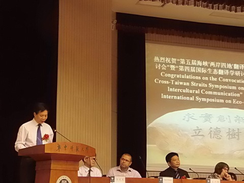 大会开幕式上,校党委副书记谢守成、外语学院院长廖美珍教授,国际生态翻译学研究会胡庚申会长、国际翻译与跨文化研究Juliane House会长、中国译协金莉副会长、台湾译协廖柏森理事长、香港译协陈德鸿会长、澳门译协毛思慧会长分别致辞,台湾译协向胡庚申教授颁发终身荣誉会员证书,胡庚申会长也向华中师范大学赠送礼品。 在随后举行的大会发言活动中,外语学院英语系主任华先发教授主持了会议,Douglas Robinson教授、毛思慧教授、杨承淑教授、熊兵教授、陈德鸿教授等国内外专家围绕“翻译与跨文化交流:共生与互动”和“生态翻译学: 范式与方法”两大主题分别做了专题发言,引起与会代表的热烈反响。