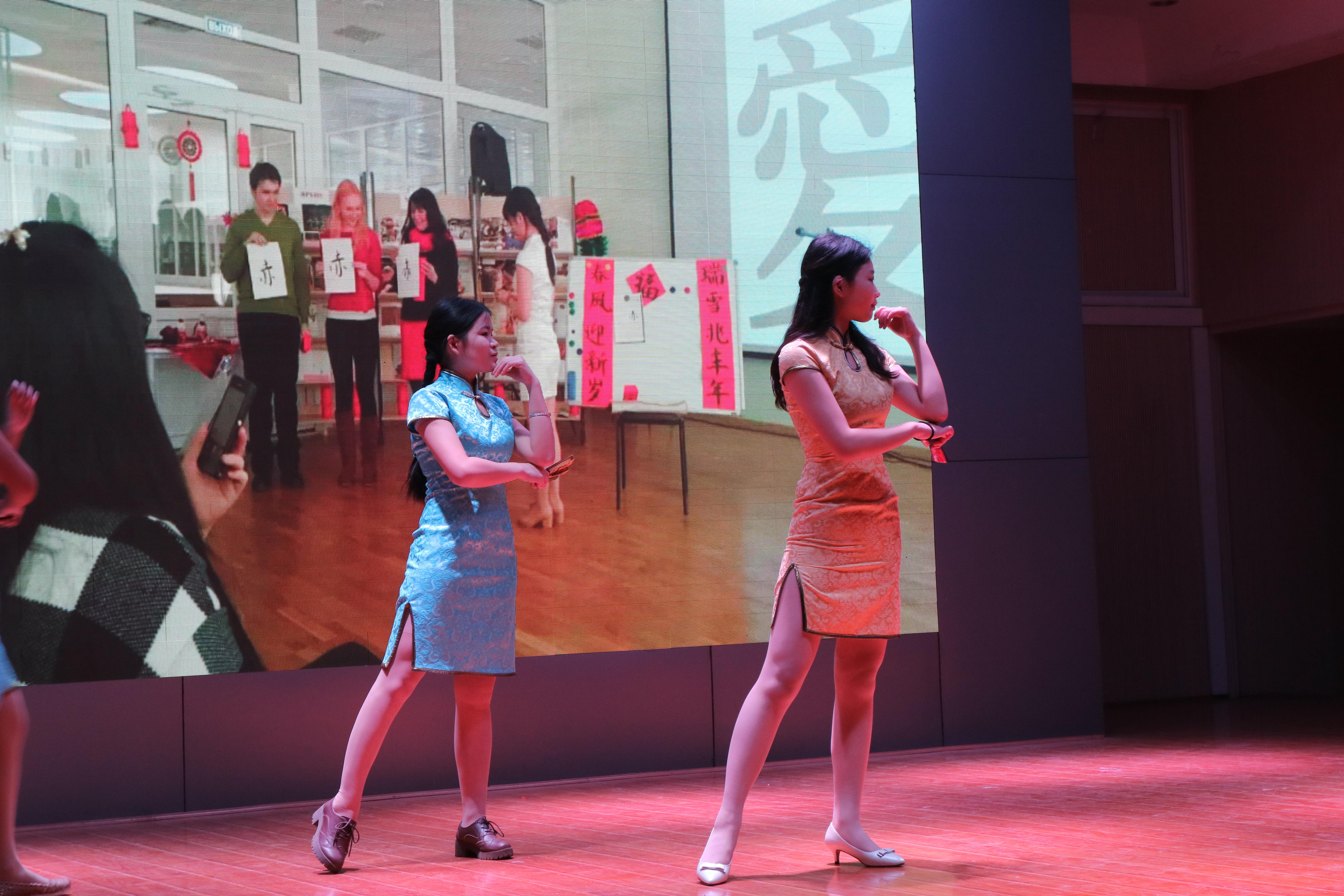 随后,院党委书记李云为5位提名奖获得者颁奖并合影留念。接着,观众们欣赏了“阳光学子”事迹展演。展演节目精彩纷呈,既有歌舞剧,又有小品话剧。《我们在俄罗斯由2013级俄语系的俄罗斯坦波夫留学交流团队出演。在2015年,俄语系的十姐妹远赴俄罗斯交流学习。异国他乡,她们相互依靠,共同奋进,全部以优异的成绩完成了学业。同时外,她们热心传播中国文化,在中俄文化交流方面所做出了自己的努力与贡献。
