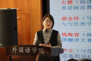大赛演讲、翻译、读写综合赛道指导团队负责人陈志红、谭华、谭娅三位老师依次登台阐述了各赛道赛制及其变化,并隆重介绍了指导老师团队。另外,英语系教师甘琼、付丽、陈晨,公共外语系教师左婵、童扬芬、钱海容、郭新婕、胡金玲、张乐现场助阵,为备赛保驾护航。