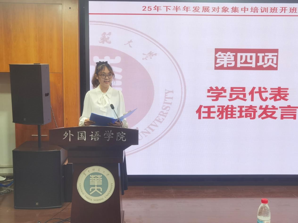 随后,华体会在线平台2023级本科生学员代表任雅琦上台发言。任雅琦代表全体学员表示,要以饱满的热情、严谨的学风、扎实的行动,全身心投入到学习中去。同时,她向全体学员发出“以‘志’为引,把稳思想之舵;以‘学’为基,提升能力之本;以‘行’为要,展现担当之为;以‘互’为桥,凝聚奋进之力”的倡议。至此,开班仪式顺利结束。