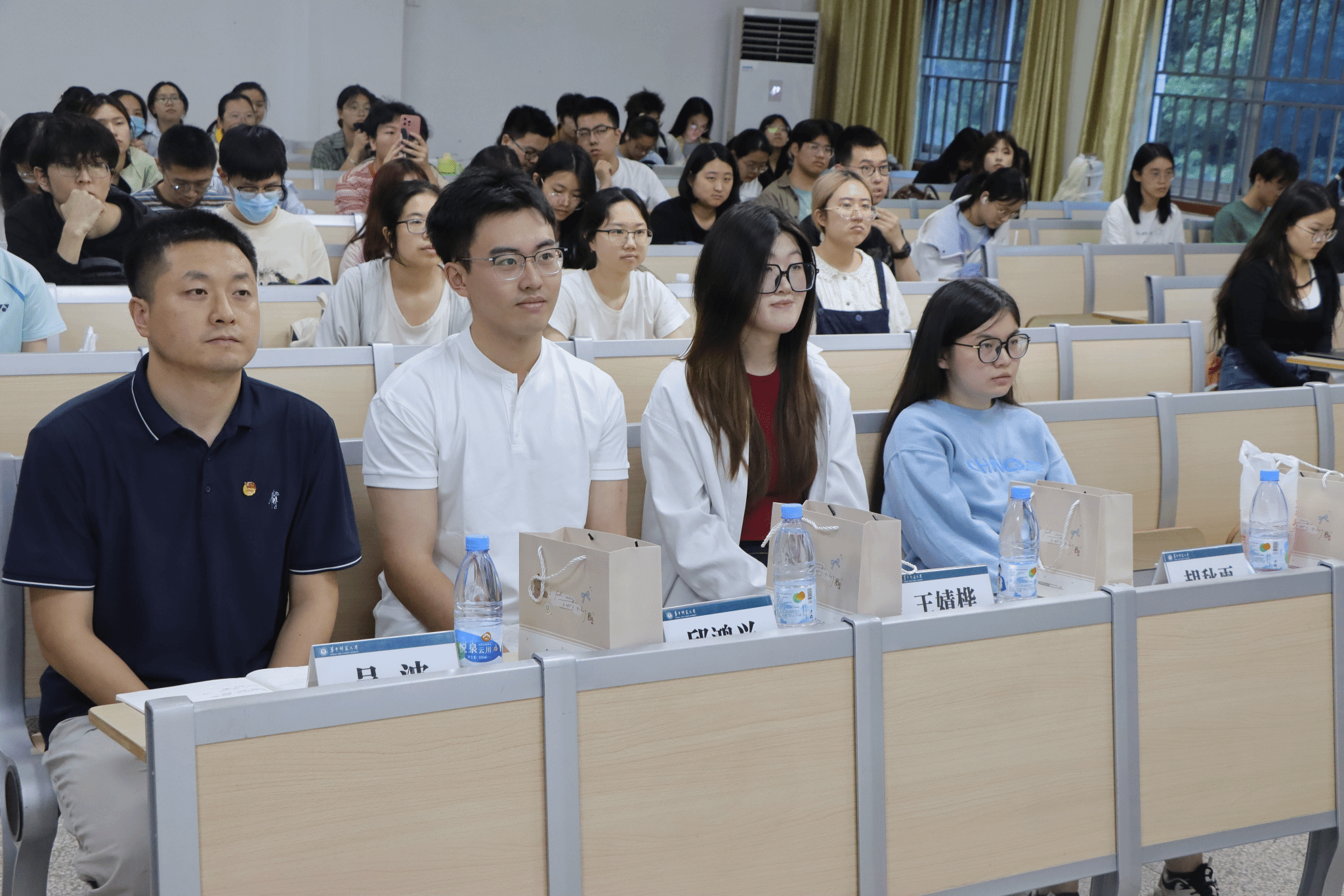 2021级英语专业本科生邱鸿兴首先进行经验分享。他的分享主要围绕教育实习和就业两个板块展开。在教育实习方面,他建议同学们提前熟悉教材,提升自我的教学能力。在就业方面,他从笔试和面试两个环节分享了自己的经验,为同学们提供了清晰的准备方向。