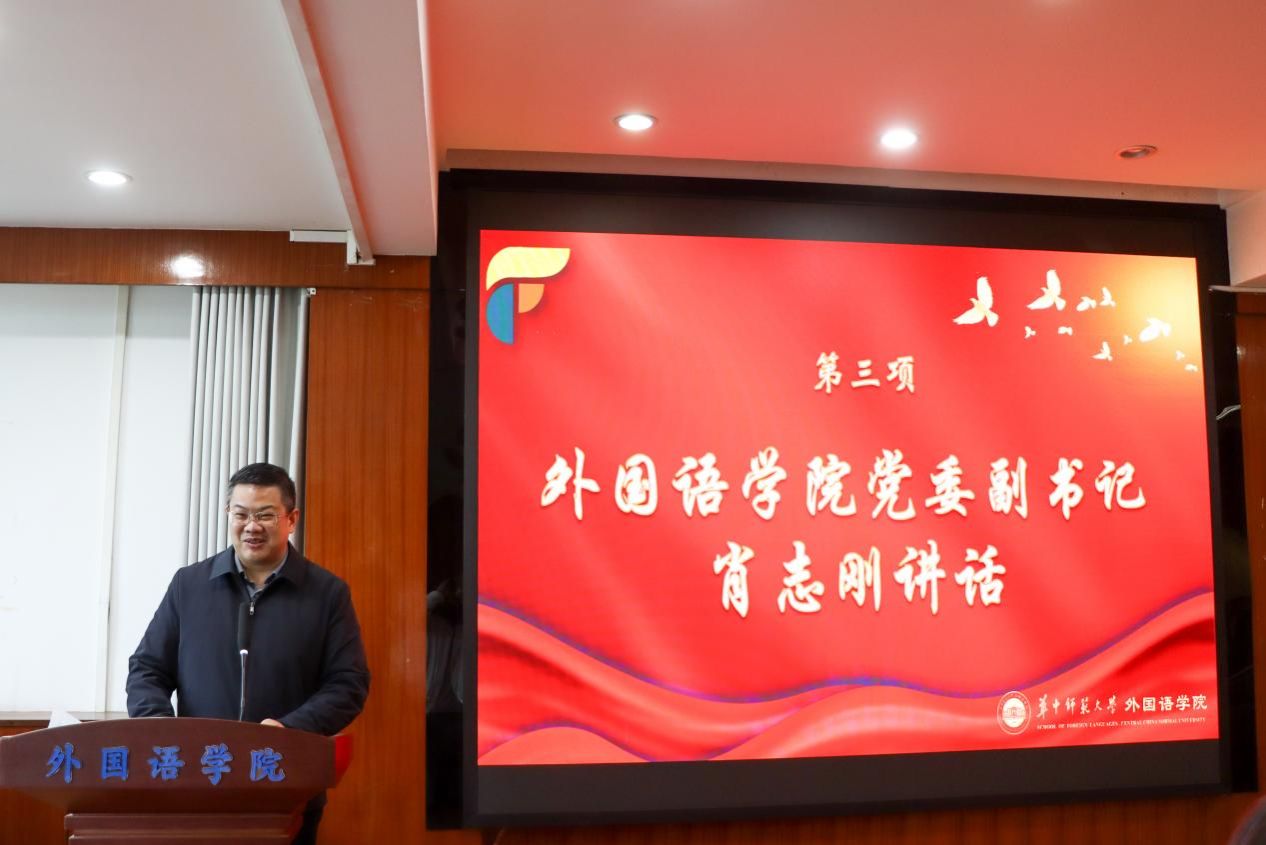 肖志刚发表讲话。他以时代对比为切入点,高度肯定了当代融媒学子的综合素质与专业能力,强调“语思”融媒体中心作为学院党委领导下的重要宣传阵地,承载着弘扬主流价值,赋能学院发展的重要使命。他向同学们提出了三点期望:一是坚定政治信仰,筑牢思想根基,当好“语思”先锋;二是深耕品牌内涵,勇于创新创造,讲好外院故事;三是锤炼过硬本领,勇担时代重任,做好时代青年,将个人成长融入学院发展与国家需要,在实践中培养多元能力,展现当代外院青年的责任与担当。