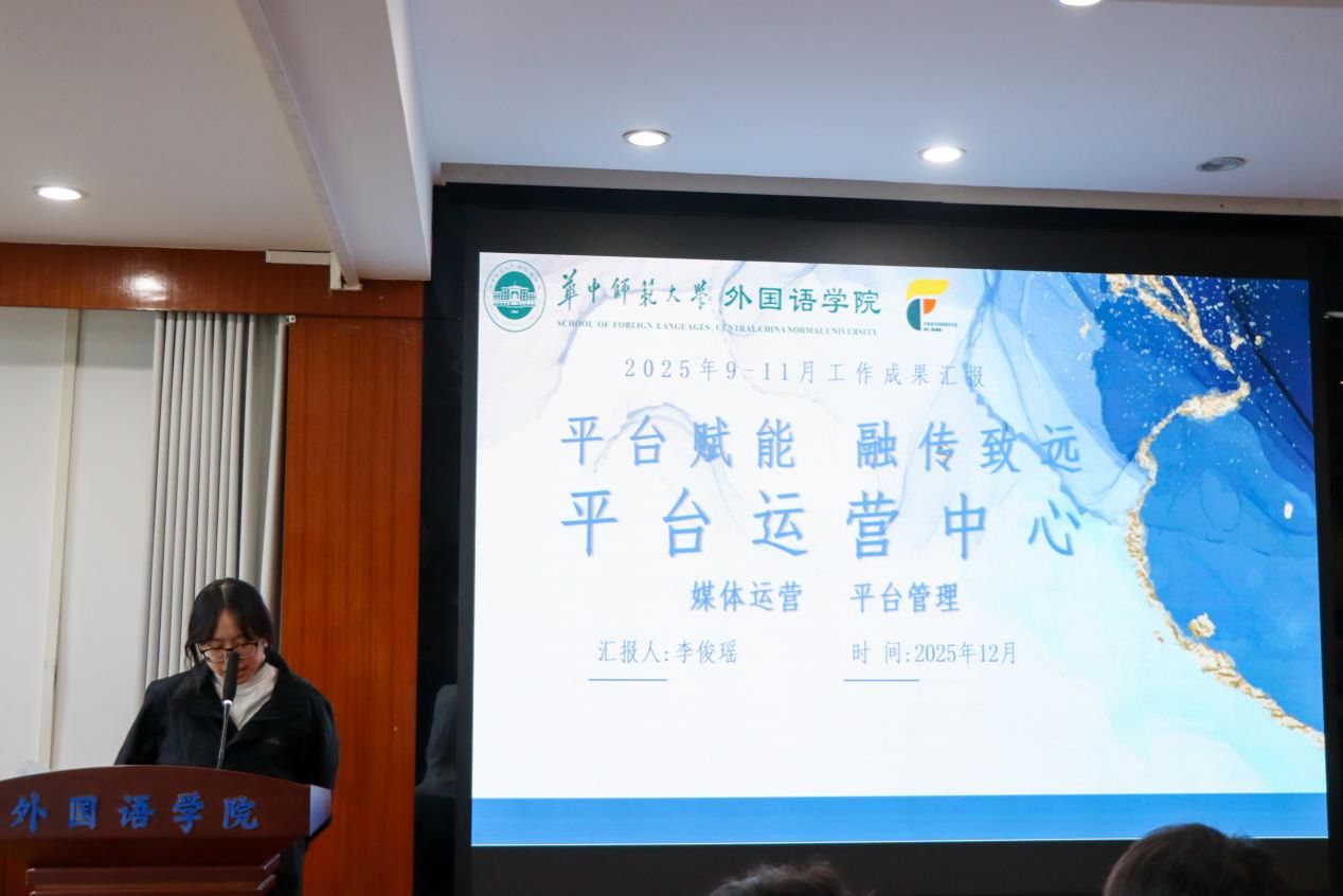 在汇报环节,各部门负责人依次汇报近期工作成果。中心办公室以“服务为先”,圆满完成多项任务,为中心高效运转筑牢根基;数字文化产品中心深耕原创内容,推进多个重点项目,从文创产出,海报设计等多方面输出,用视觉语言传递外院风采;平台运营中心以新颖排版与优质内容实现阅读量、分享率显著提升;华体会在线官网中心完成各项拍摄与华体会在线官网稿任务,持续提供优质影像及文稿支持,为宣传报道提供了坚实支撑。各部门各司其职、协同联动,充分展现了语思融媒体中心的蓬勃活力与专业素养。