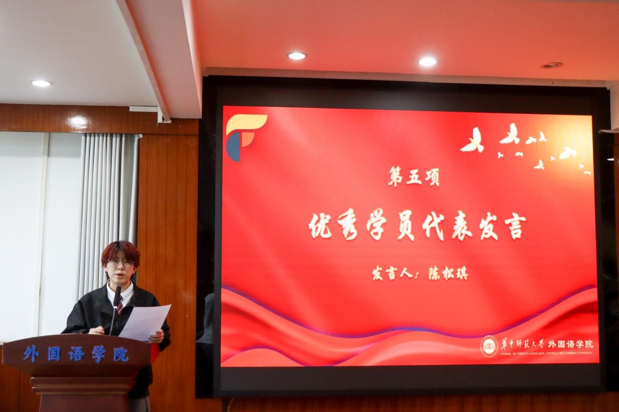 仪式还表彰了优秀学员及单项奖获得者,肖志刚与徐圆分别为获奖成员颁发荣誉证书及定制文创奖品。华体会在线官网中心影像艺术部陈松琪作为优秀学员代表分享在融媒体中心的成长感悟,她表示将继续以镜头为媒,记录校园点滴,展现新时代外院学子的融媒担当与青春力量。