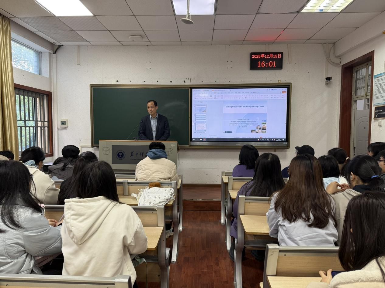 12月15日,我院在3216教室举办大一学生“优师计划”培养与师范教育发展专题讲座。本次活动由学院党委副书记罗舰主持,外语教师教育研究中心主任、中国农村外语教育研究中心副主任闫春梅教授担任主讲。学院大一英语系辅导员李泽及2025级英语“优师计划”全体学生参与。