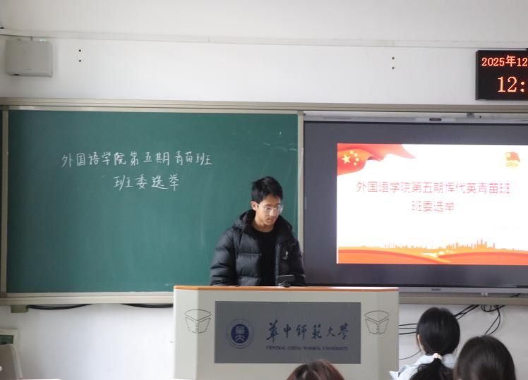 本次班会进行了班委选拔。选拔过程中,候选人依次上台进行竞选发言,结合自身学习、工作经历,围绕思想觉悟、学业成绩、学生工作、志愿服务等多个方面展开阐述,分享了自己对青苗班培养目标的认识,并对未来在理论学习、实践锻炼与服务同学等方面的规划进行展望,展现了外院青年学子积极向上、锐意进取的精神风貌。