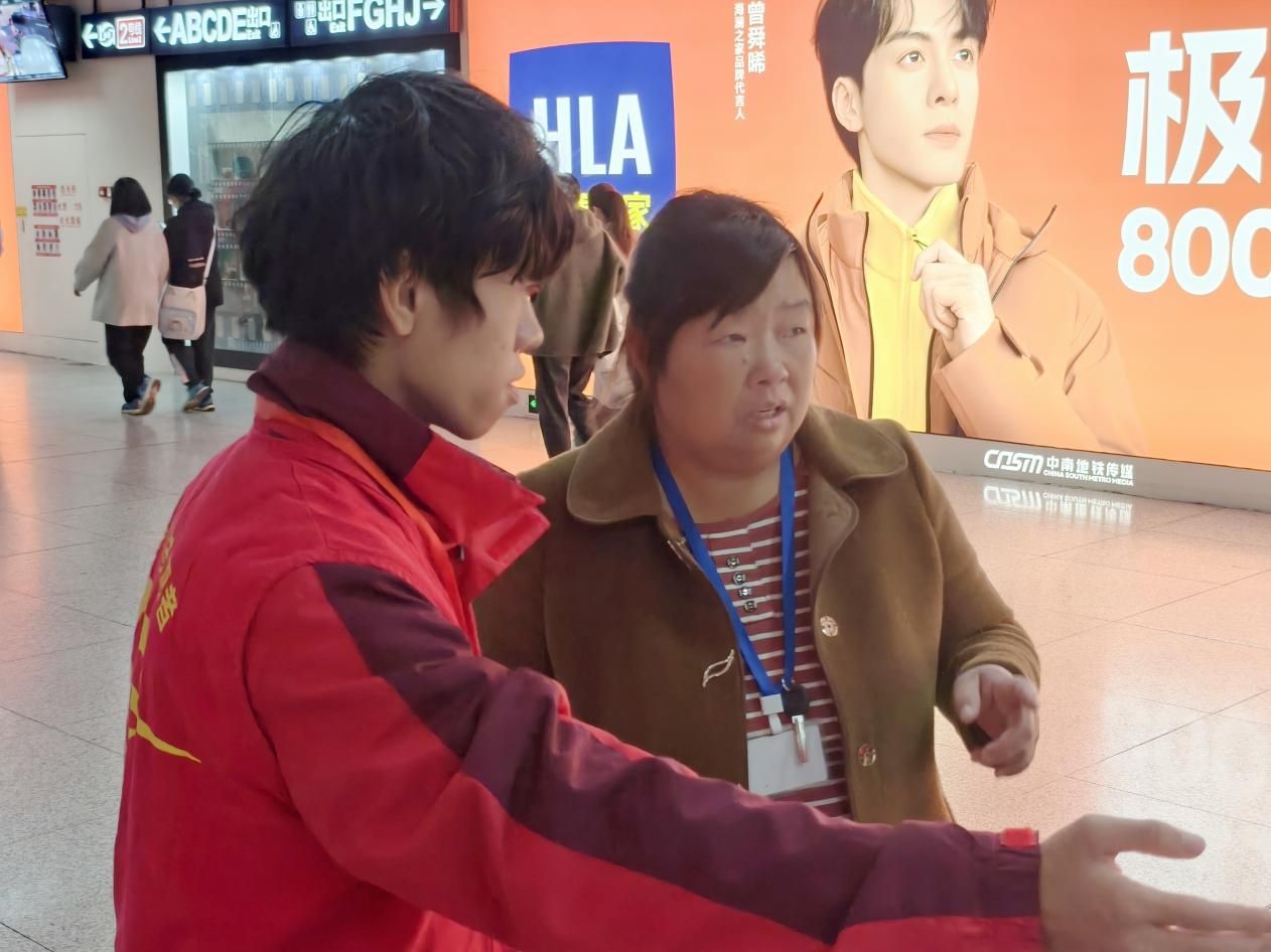 11月22日早晨八时十五分,志愿者们准时于学校北门集合,与负责人共同前往江汉路地铁站。抵达后,负责人带领志愿者们前往警务室门口领取志愿者服与志愿者工作牌,并向志愿者们详细介绍了服务岗位及内容,同时强调了相关的注意事项和纪律要求。随后,志愿者们各就各位,开始进行志愿服务。