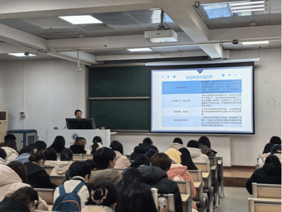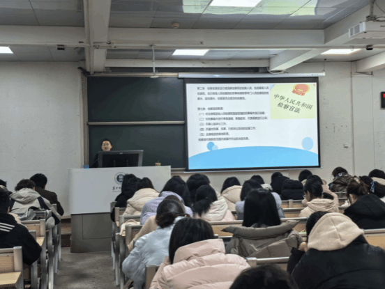 宣讲环节,易柔池检察官首先向同学们阐释了检察官的职责,随后结合自身丰富办案经历,系统梳理了电信网络诈骗、校园贷、兼职刷单诈骗等大学生群体高频遭遇的骗局类型。同时,她结合多部办案相关电影影片普及法律知识,让抽象的法律条文变得通俗易懂。在此基础上,易检察官精选多起高校典型案例,详细拆解诈骗分子的惯用话术与作案套路——从“高价收卡转售”的利诱,到“话务员拉群”的陷阱,再到“帮转赃款”的骗局,生动还原了诈骗分子的作案全流程,帮助同学们直观认清各类骗局的隐蔽性与危害性。